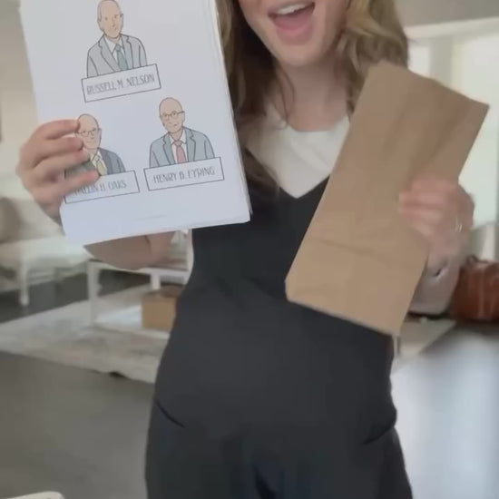 All you need is a printer, some paper bags, and basic household items to bring the magic of General Conference to life in your living room. Have one activity ready for each apostle, slide it into the bag and attach an apostle print on the front of the bag then staple it shut to add more anticipation!