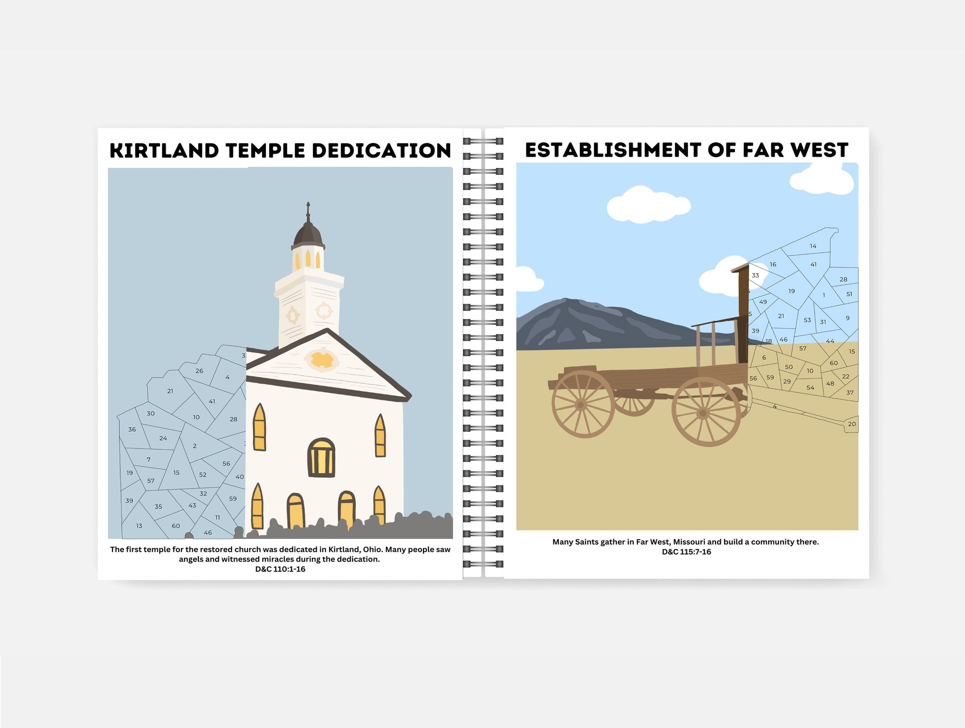 Unveil the extraordinary events of the restoration in a whole new way with our captivating Sticker-By-Number Book. Designed to ignite the imagination and deepen the connection to the Savior, this unique activity book is a perfect blend of creativity and spiritual enrichment, catering to ages 4-12.