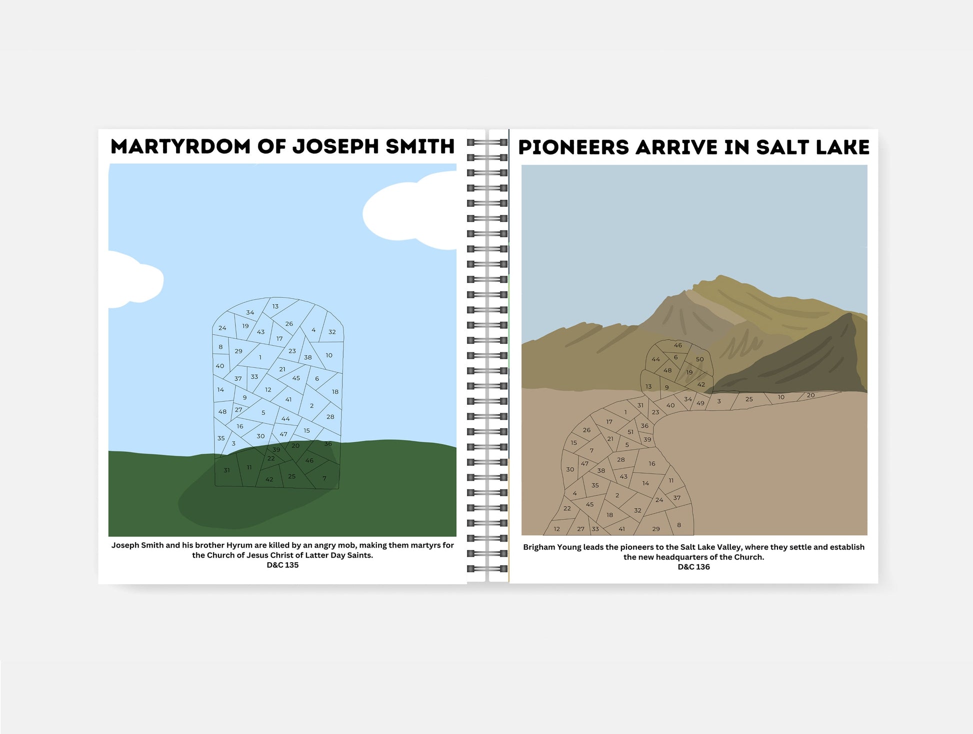 Introducing the Inspirational Sticker-By-Number Book: Reveal the events of Doctrine & Covenants, One Sticker at a Time!