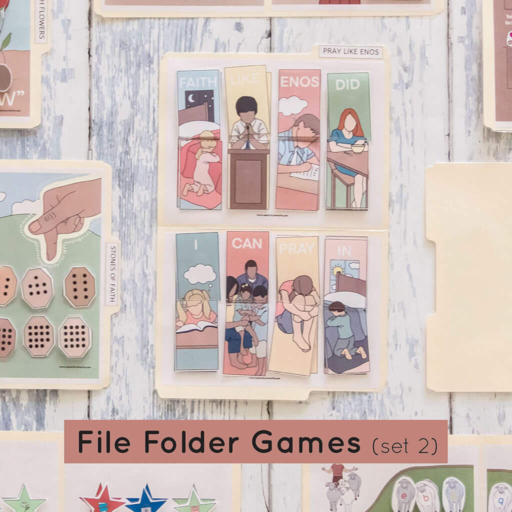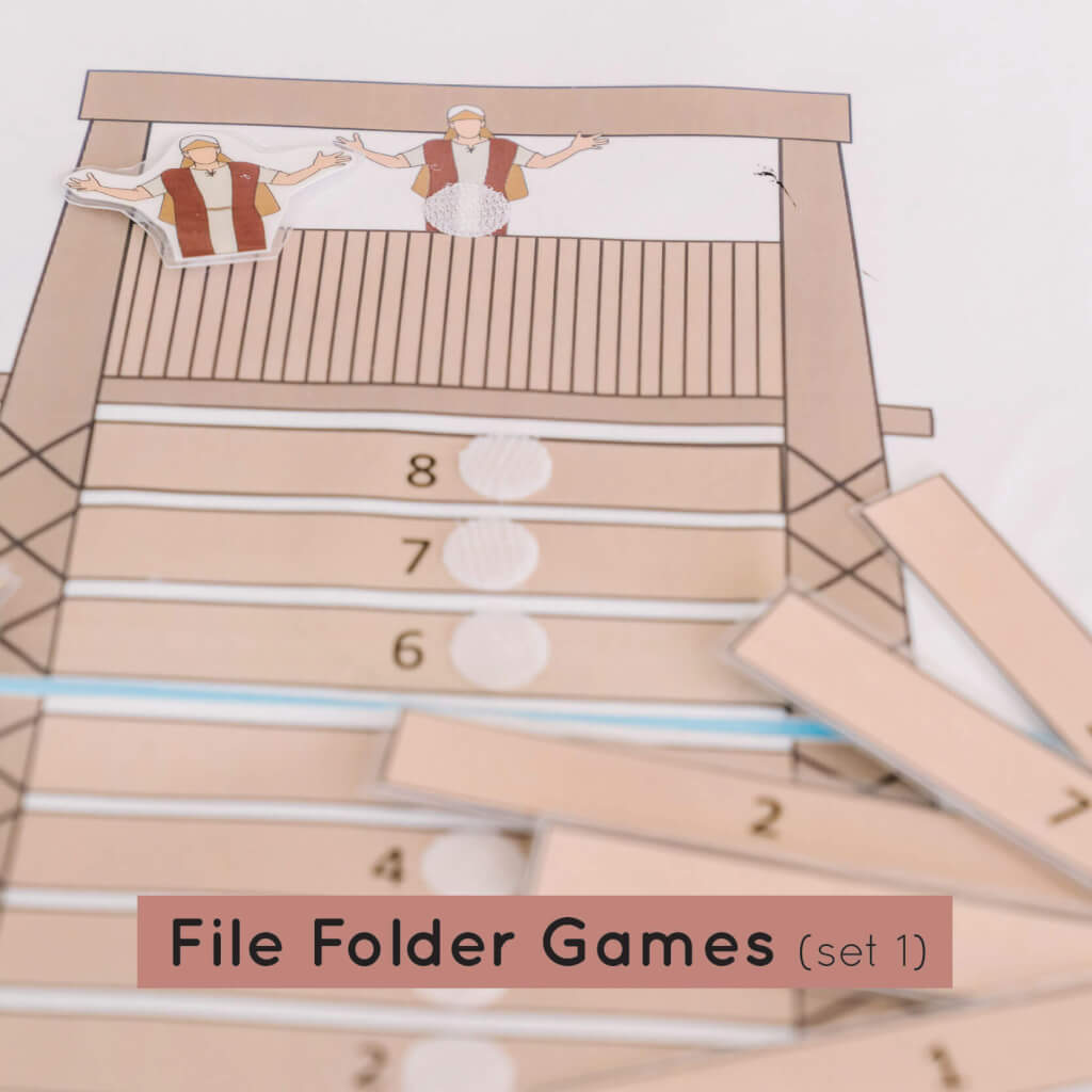 - Not one, but TWO sets of BOM File Folder Games – each packed with EIGHT fun and compact games.